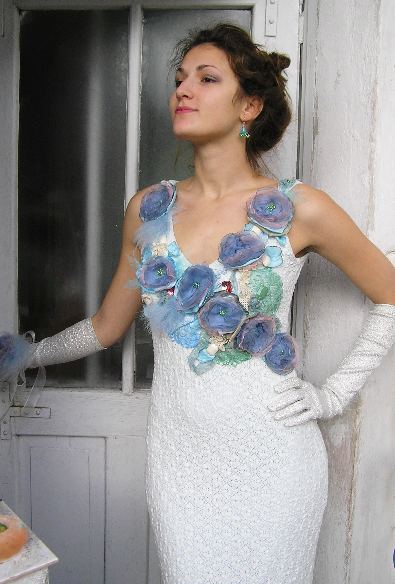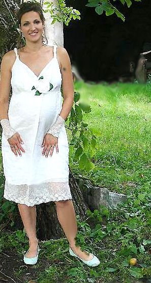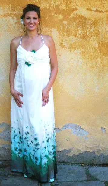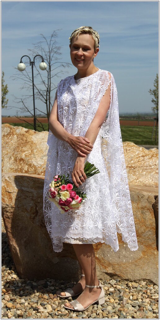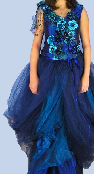 Společenské a svatební šaty - podle vlastních návrhů a na pouze na zakázku. Vytvořím návrh, poté se zákaznicí navštívím obchody s látkami a společně vybereme látky a krejčovskou přípravu. Šaty zdobím a ručně maluji a nebo barvím. Vyrábím k šatům také doplňky a nebo šperky.