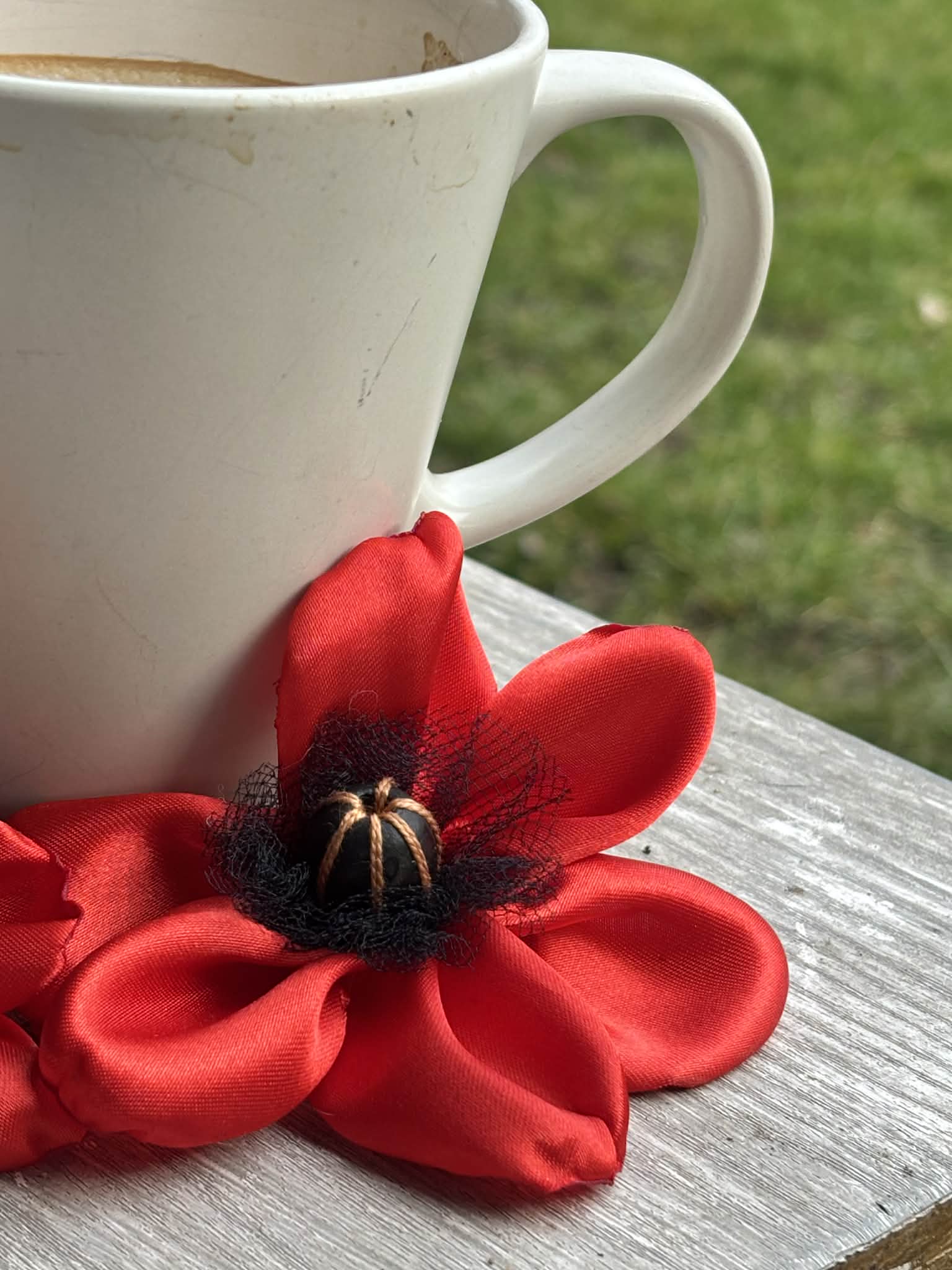 Mák červený sponka, brož ViolaArt. A zase ten mák, zase to těšení na jaro - materiál satén, polyester, dřevo, průměr cca.8 cm, Zapínání na brožový můstek