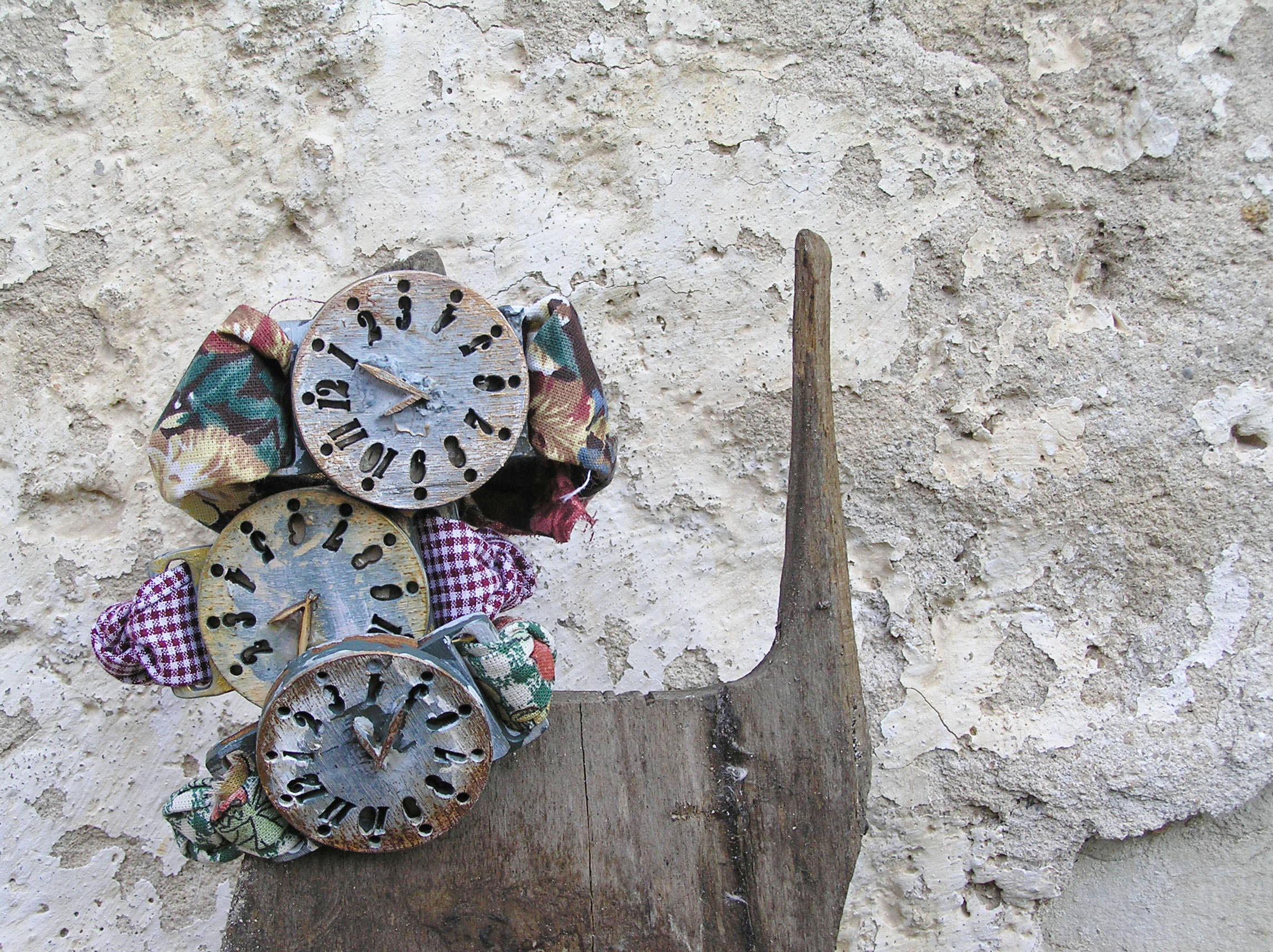 Taky nosíte rádi své hodinky, ale v dnešní době mobilů je už nepotřebujete? Nevadí, můj náramek je nahradí :o)). Je složen ze tří vrstev překližky, patinován mnohými barvami, včetně práškové bronzi. Můžete mít různé pásky, stačí napsat číslo. Zavazuje se na uzel. Průměr ciferníku je 45 mm