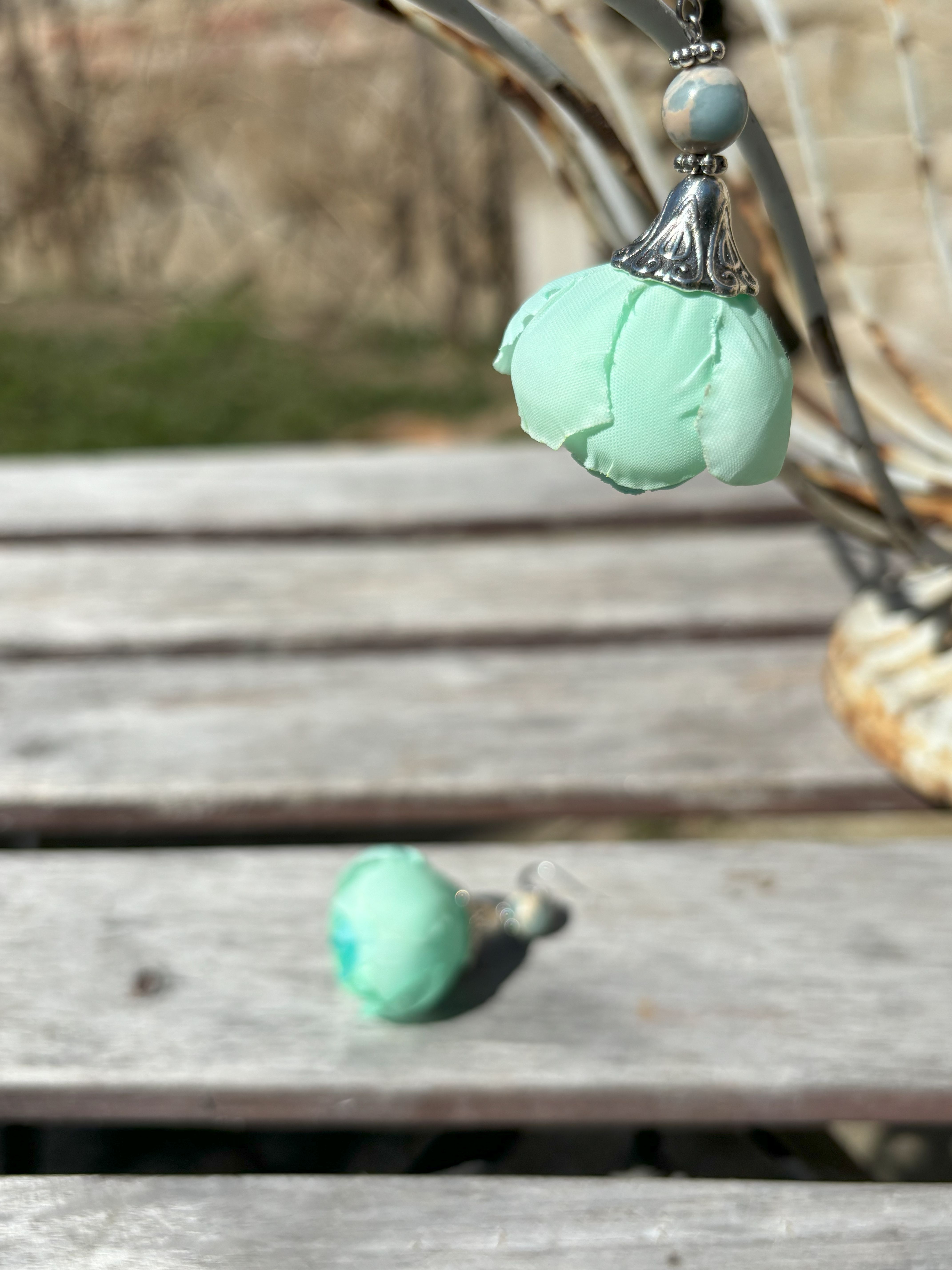 Elegantní a lehké, tyto náušnice z textilních květin s minerály dodají vašemu outfitu nejen romantický nádech, ale i sílu přírody.