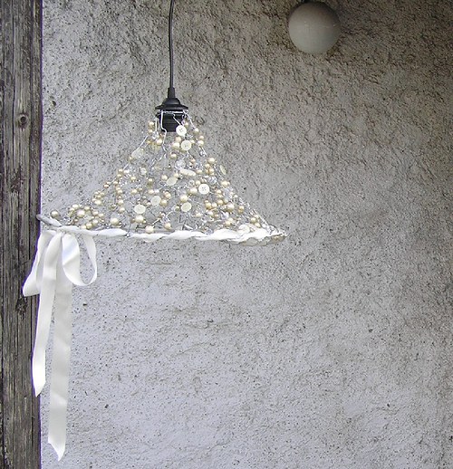 Stínidlo k lampičce Je vyrobeno z ocelového, žíhaného drátu různých tlouštěk splastovými korálky…