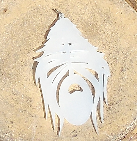 Paví pero - přívěsek cca. 10 x 6 cm z plexiskla 3mm silného.