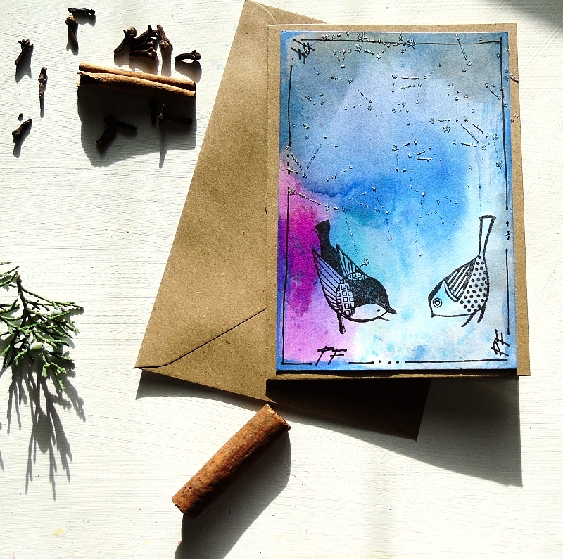 Vánoční přání 13 x 13 cm s obálkami. Na bílém a krémovém papíře jsou vytvořeno přání inkousty,…